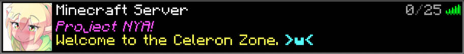 "NYA0" was a Minecraft 1.7.10 server ran on an eMachines W2925 featuring 2 GBs of DDR333 RAM,