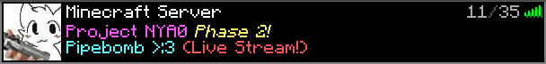 "NYA0 Phase 2" was a Minecraft 1.12.2 server ran on a 2006 Intel iMac (5,2) featuring 2 GBs of DDR2 RAM,